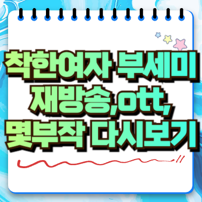 착한여자 부세미는 첫 방송부터 묘한 긴장감을 자아내며 시청자들의 눈길을 끌었습니다. 흡입력 있는 스토리와 배우들의 섬세한 연기가 더해지며 입소문을 타고 있는 이 드라마는 본방을 놓쳤다면 다시보기나 재방송을 찾는 분들이 많습니다. 몇 부작인지, 어디서 볼 수 있는지 정리해드립니다.